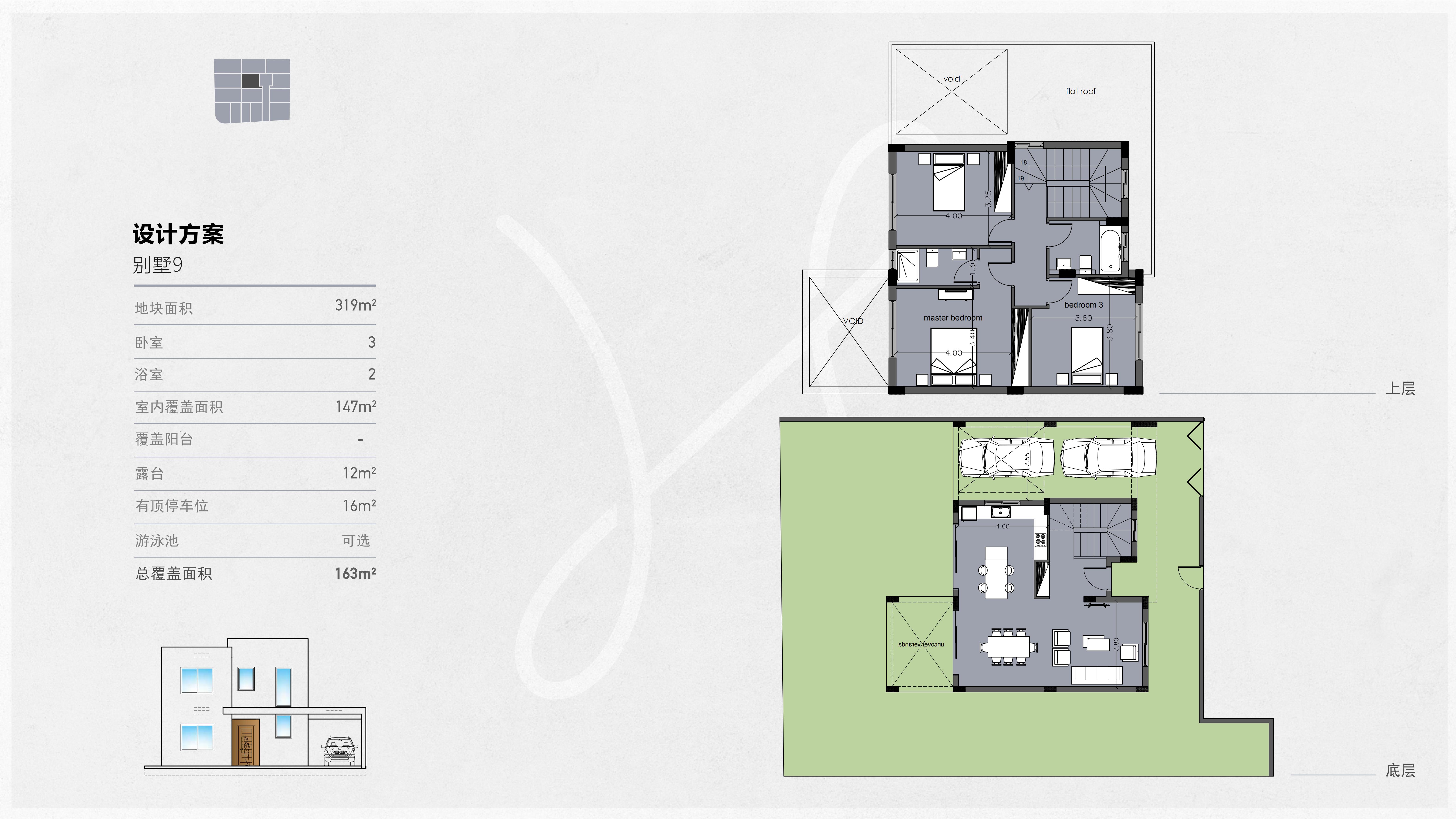 别墅区内均是2-3居室的别墅,并可额外增加一间卧室。从温馨的一层别墅到豪华的两层豪宅均有,别墅的设计灵感来自于地中海建筑,地块广袤,可以选择自己的私人游泳池和烧烤区。